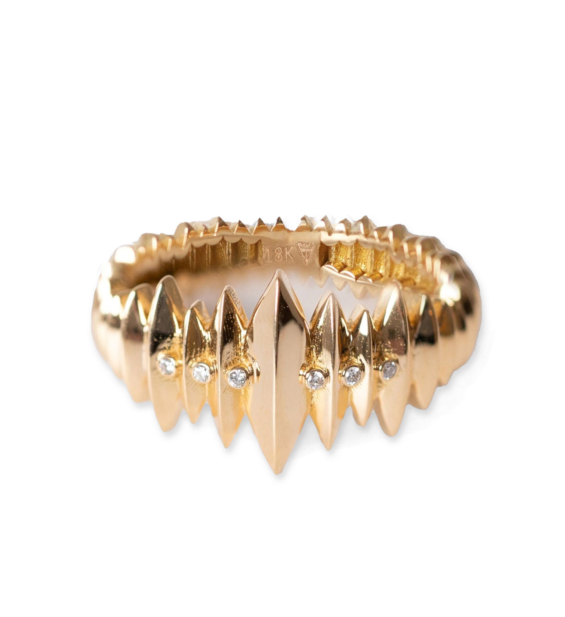 Our signature piece, crafted in 18K Yellow Gold, features a brilliant diamond set at its center, symbolizing timeless elegance and refined craftsmanship.