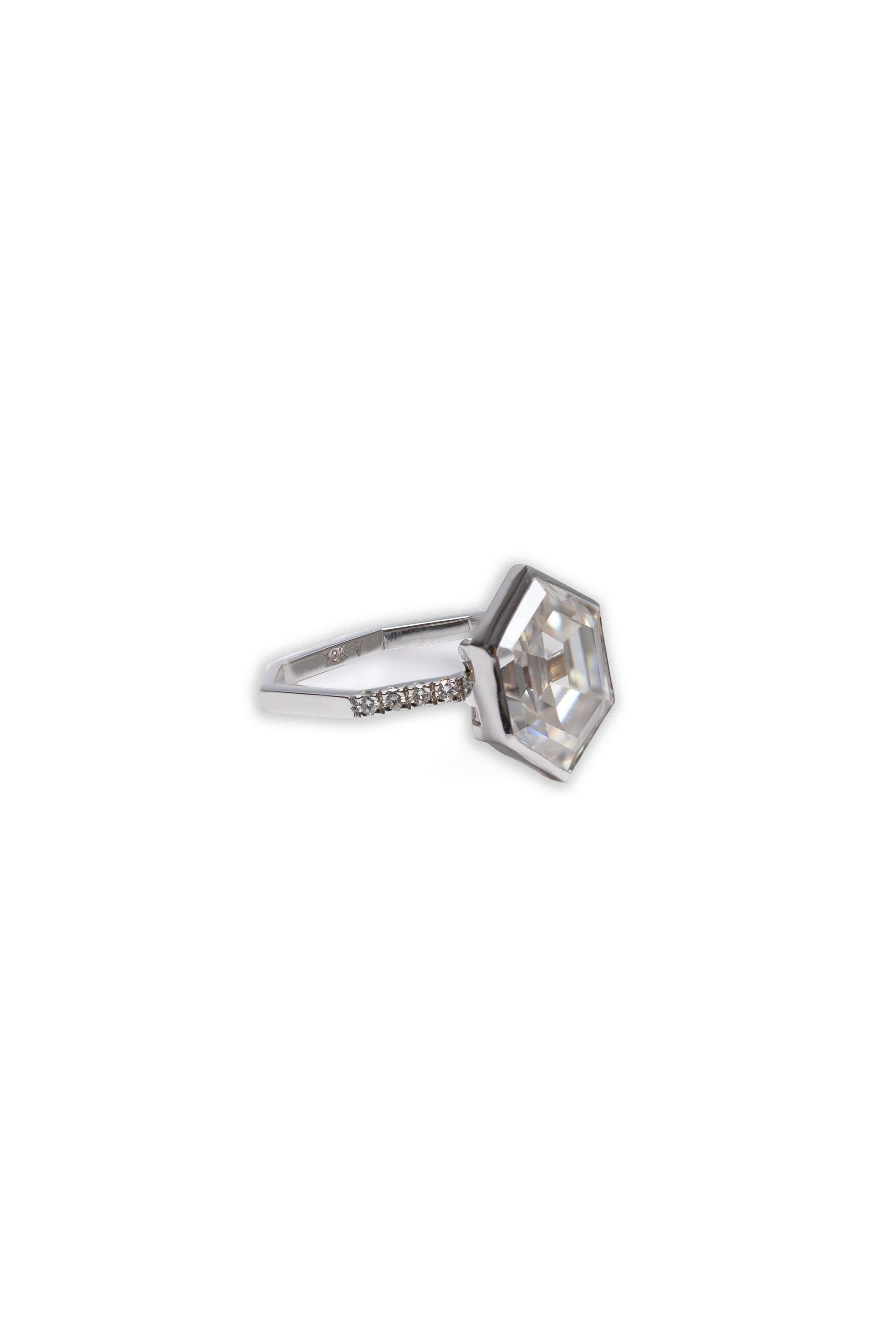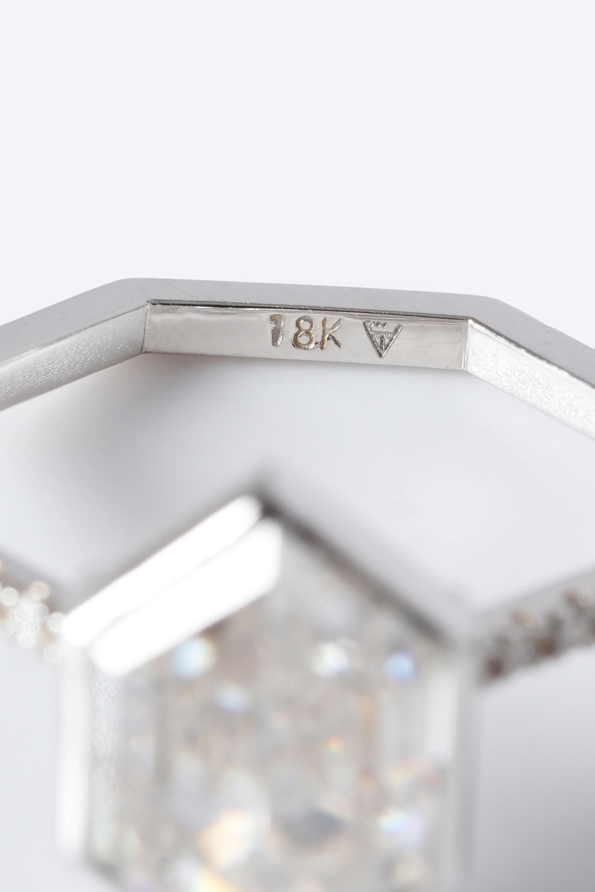 Crafted in 18K White Gold, this exquisite piece is adorned with a natural Moissanite gemstone sourced from Sri Lanka, celebrated for its vibrant color and exceptional quality.